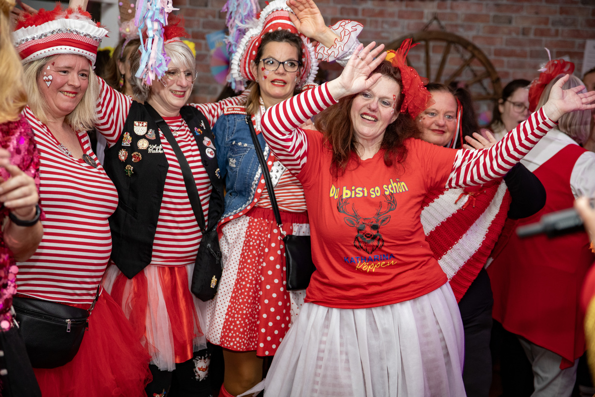 Bereits zum Auftakt sorgte Katharina Köppen für ausgelassene Stimmung und brachte den „Grinki“ zum Kochen. Bereits gegen 12.20 Uhr bahnte sich die erste Polonaise ihren Weg durch die Location.