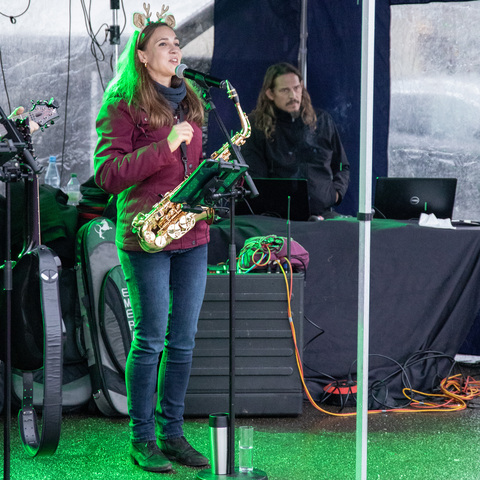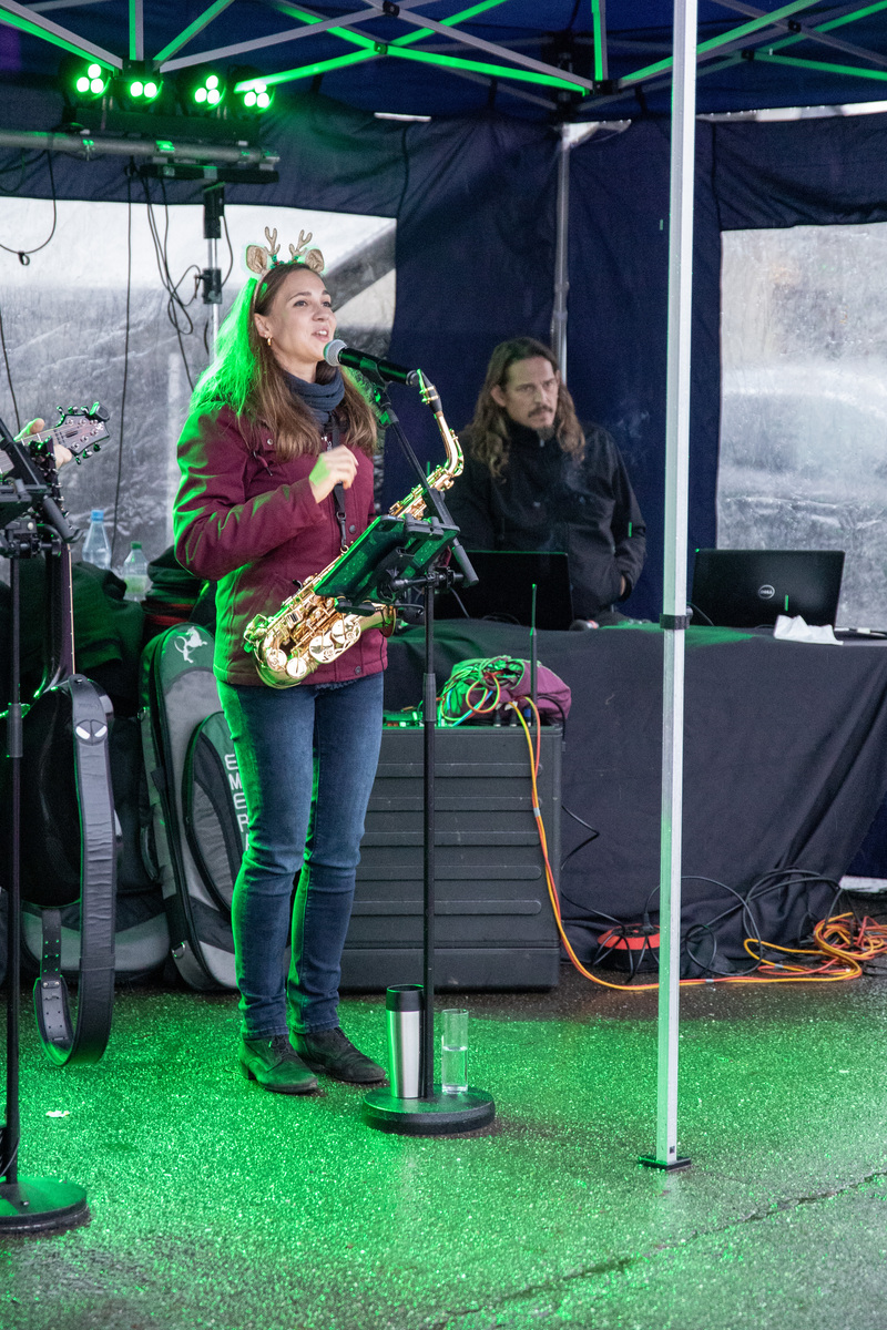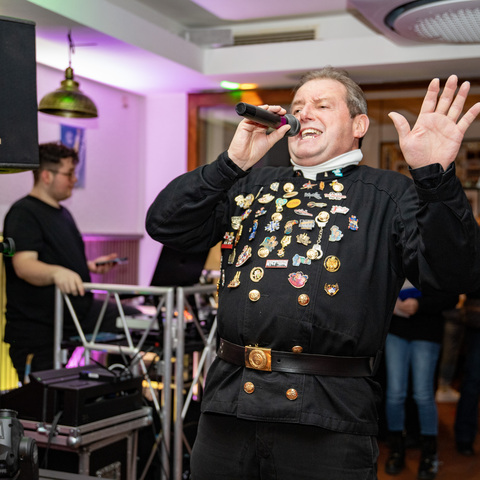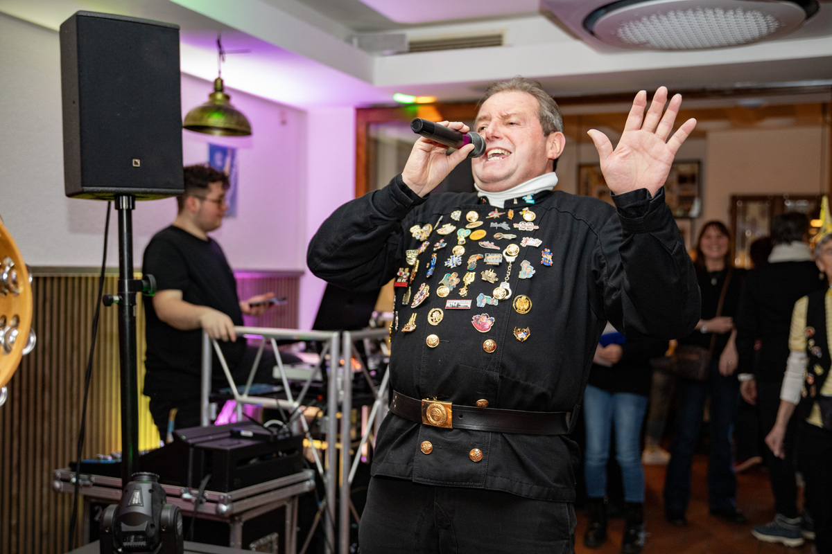 Nach einer kurzen Essenspause folgte um 19:15 Uhr ein musikalisches Highlight: Trompeter Markus Rey heizte den Saal ein und verwandelte die Stimmung in ein Meer aus Gesang, Schunkeln und Tanz. Kölsche Töne, die mitten ins Herz trafen!