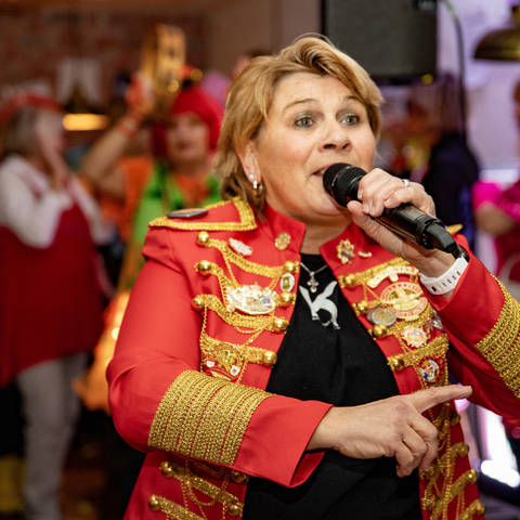 Alle drei Mitglieder des Dreigestirns fanden warme Worte für die zahlreichen Ehrenamtler im Fastelovend und begeisterten die Jecken im Saal mit einem Medley aus diversen Liedern von Marie-Luise Nikuta.